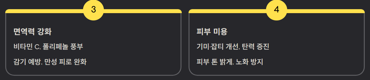 비타민 C와 폴리페놀 성분은 면역력 향상에 중요한 역할을 합니다. 계절성 감기나 만성 피로에 시달리는 사람들에게 도움이 되는 과일입니다.