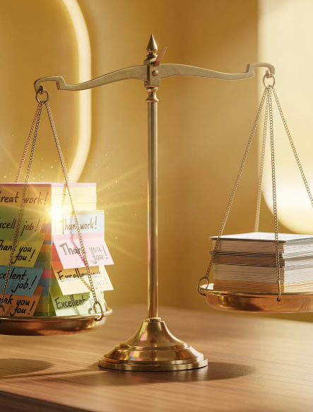 건강한 관계와 성장에는 둘 다 균형 있게 필요합니다. 칭찬만 있어도, 지적만 있어도 발전하기 어렵기 때문입니다.