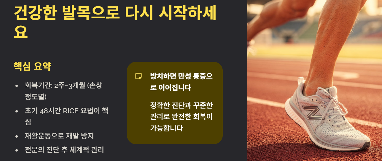 발목 인대 파열 회복기간을 중심으로 단계별 치료 방법과 실제 후기, 빠른 회복을 위한 관리법까지 자세히 정리해드립니다.